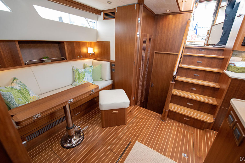 The semi-custom design of a Hunt Ocean 56 yacht allows an array of modifications so you can create a vessel that's perfectly suited to your lifestyle. Select a two or three cabin layout or an above or below deck galley, then personalize your craft with upholstery, finishes, accessories, and appliances to ensure you and your guests enjoy best-in-class comfort and convenience on every outing.
